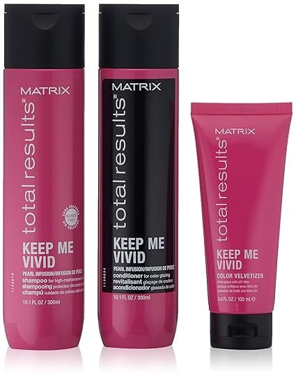 Amazon Com Matrix Total Results Keep Me Vivid Shampoo Conditioner Leave In Kit Nourishes Enhances Hair Color For Color Treated Hair Premium Beauty